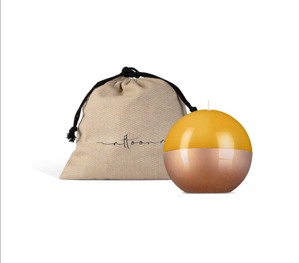 Our fashion candles are the perfect accessory for your home. Beautifully shaped, 6 inch diameter ball candle is the perfect home decor accent on its own, or makes a chic statement by pairing it with ball candles of different colors and sizes. The candles features a flat, velvet bottom so that the candle can stand without damaging the surface. * Size: 6 inch Diameter * 2 Tone color * Velvet bottoms to protect furniture * Comes in its own Gift Bag * Unscented * Hand poured