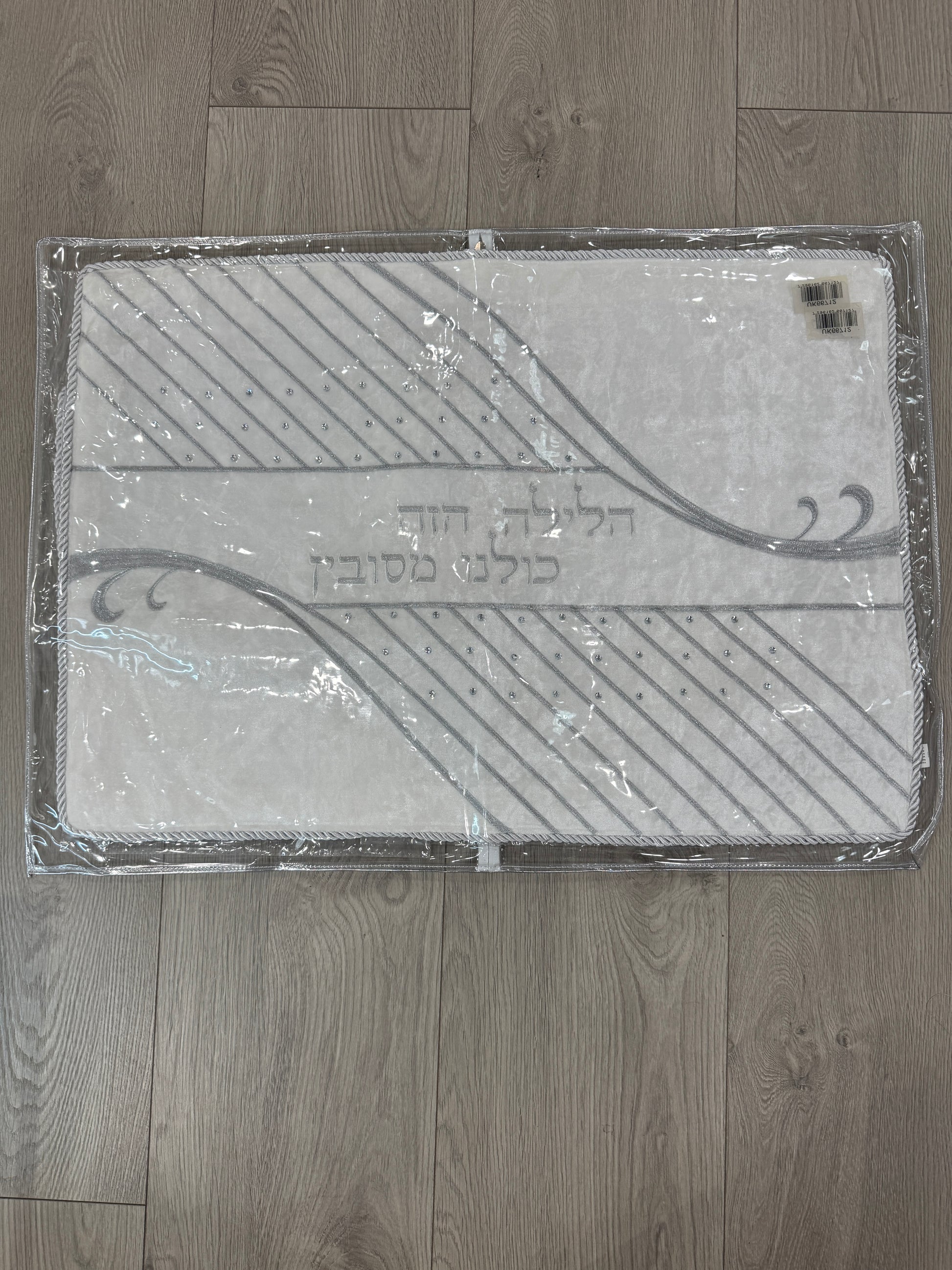 This Royal Crush white velvet set features silver thread, Silver Cord edge and Rhinestone detail for the most majestic Seder! Set Includes Pillow Cover, Matzah Cover, Afikoman bag and Wash towel.