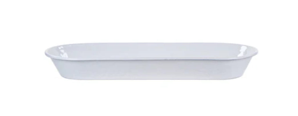 Bring a touch of charm to your table with this Oval Basket in lagoon pattern. This ovensafe enamelware basket, is ideal for serving warmed garlic bread, roasted veggies, scalloped potatoes or fresh produce. With its vibrant colors and practical shape, it effortlessly combines style and functionality for any occasion.