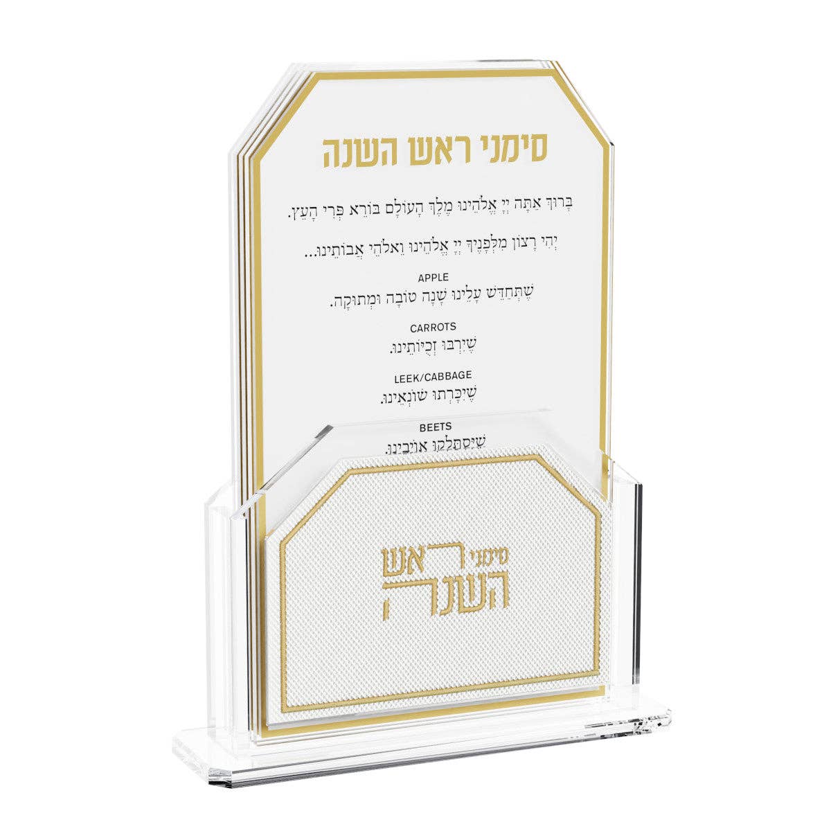 This luxurious Leatherite Simanim Pack is the perfect addition to your Yom Tov table. Elegant and sophisticated, this beautiful simanim set is the ultimate Rosh Hashanah addition. Each simanim card is perfectly designed to make it clear to read. Complete with an embroidered leatherite holder, this set brings a new joy to the reading of the simanim.