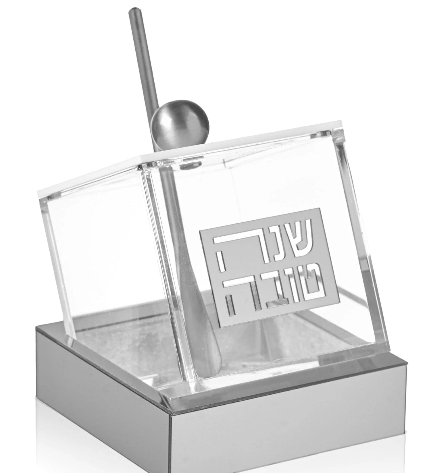 Bring a refined touch to your Rosh Hashanah table with this stunning Tilt Honey Dish, beautifully nestled in a mirrored silver base. Designed for easy, mess-free dipping, it’s the perfect blend of form and function. The perfect way to display your honey!